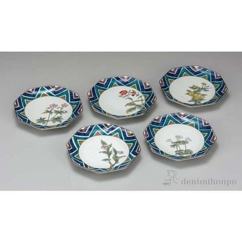 九谷焼 皿揃 山野草 6.5号 5枚セット ( 和食器セット お皿 揃える 食器 和食 九谷焼 結婚 出産 内祝い 引き出物 金婚式 誕生日プレゼント 還暦祝い 古希 )