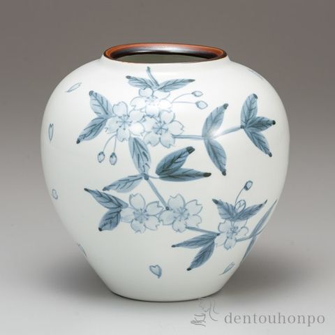 九谷焼 花瓶 桜ちらし 6号 ( 木札名入れ有料 ガラス フラワーベース 花器 一輪挿し おすすめ 九谷焼 周年 創立 上場 竣工 開店 事務所移転 開業 )