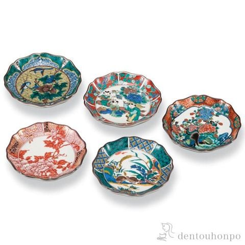 九谷焼 皿揃 歴代画 3.5号 5枚セット ( 和食器セット お皿 揃える 食器 和食 九谷焼 結婚 出産 内祝い 引き出物 金婚式 誕生日プレゼント 還暦祝い 古希 )