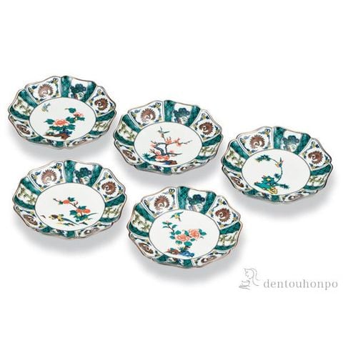 九谷焼 皿揃 花鳥絵変わり 5.5号 5枚セット ( 和食器セット お皿 揃える 食器 和食 九谷焼 結婚 出産 内祝い 引き出物 金婚式 誕生日プレゼント )
