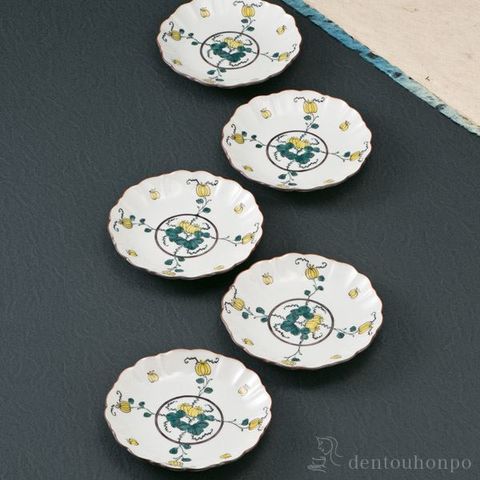 九谷焼 皿揃 からす瓜 4.5号 5枚セット ( 和食器セット お皿 揃える 食器 和食 九谷焼 結婚 出産 内祝い 引き出物 金婚式 誕生日プレゼント 還暦祝い 古希 )