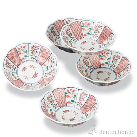 九谷焼 小鉢揃 赤絵小紋 5号 5個セット ( 和食 セット おつまみ 朝食 料理 九谷焼 結婚 出産 内祝い 引き出物 金婚式 誕生日プレゼント 還暦祝い 古希 )