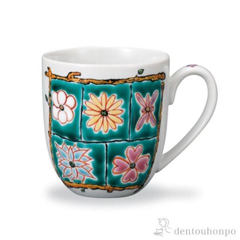 九谷焼 マグカップ フラワーBOX グリーン ( プレゼント デザイン マグ オリジナル タンブラー 九谷焼 結婚 出産 内祝い 引き出物 金婚式 誕生日プレゼント )