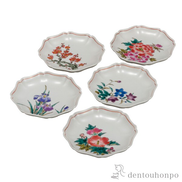 皿揃 草花絵変り 5.2号 5枚セット ( 和食器セット お皿 揃える 食器 和食 九谷焼 結婚 出産 内祝い 引き出物 金婚式 誕生日プレゼント 還暦祝い 古希 喜寿 )