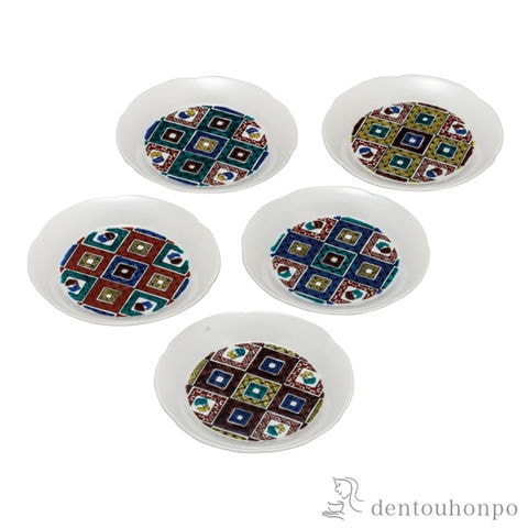 【九谷焼】 皿揃 古九谷石畳文 4.2号 5枚セット