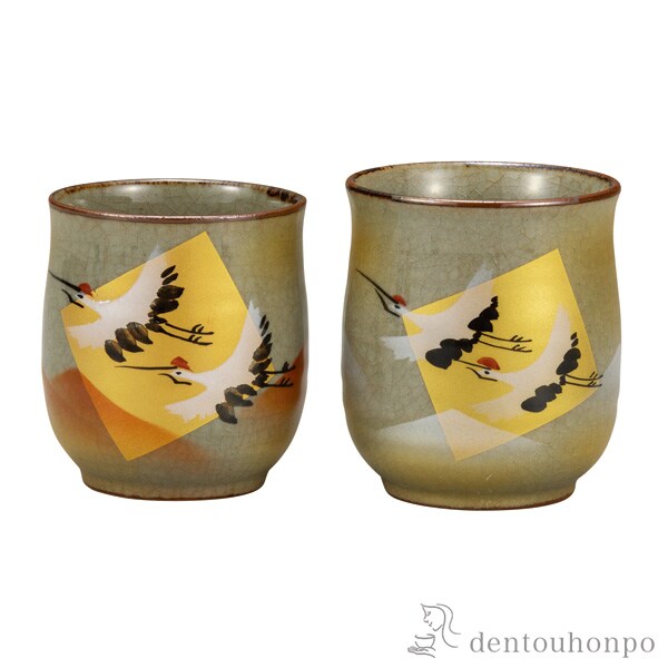 組湯呑 金箔鶴 ペア ( 湯呑み 湯のみ セット 湯飲み おすすめ セット 九谷焼 結婚 出産 内祝い 引き出物 金婚式 誕生日プレゼント 還暦祝い 古希 喜寿 )