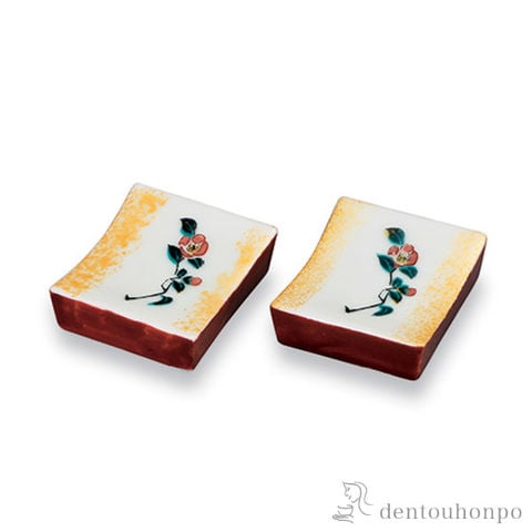 ペア箸置 金彩椿 ( ギフト セット 結婚祝い お店 人気 セット 九谷焼 結婚 出産 内祝い 引き出物 金婚式 誕生日プレゼント 還暦祝い 古希 喜寿 米寿 )