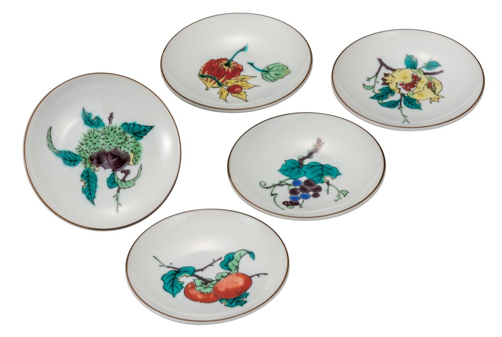【九谷焼】 皿揃 果実絵変り 3.2号
