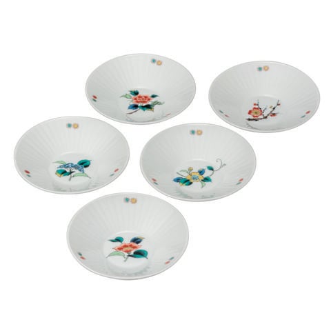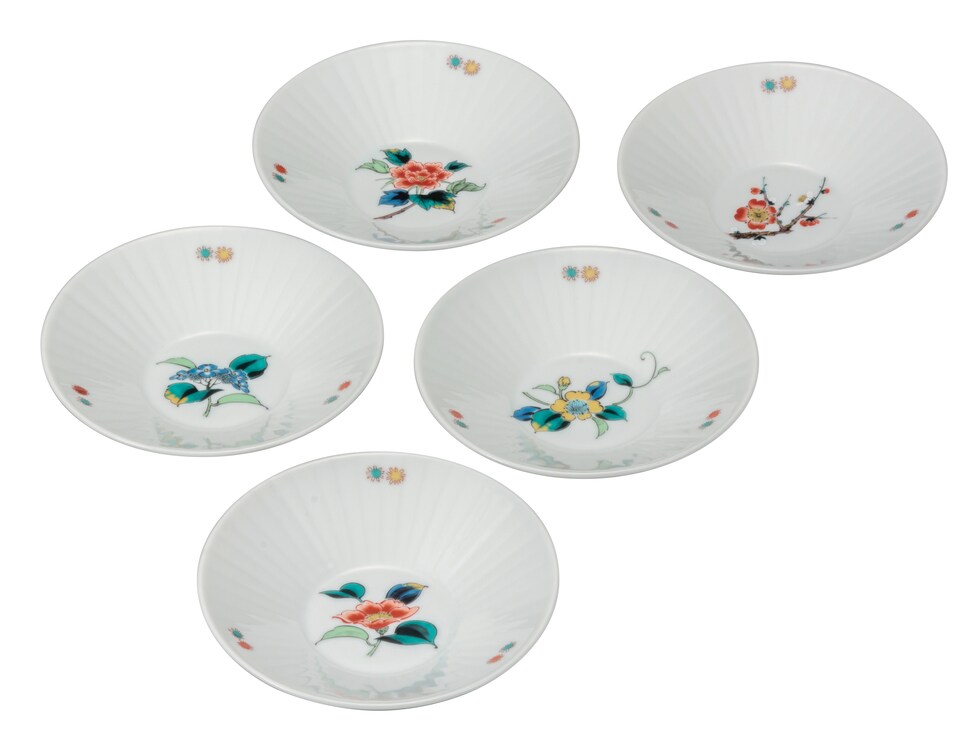 皿揃 草花絵変り 4.5号 ( 和食器セット お皿 揃える 食器 和食 九谷焼 結婚 出産 内祝い 引き出物 金婚式 誕生日プレゼント 還暦祝い 古希 喜寿 米寿 退職 )
