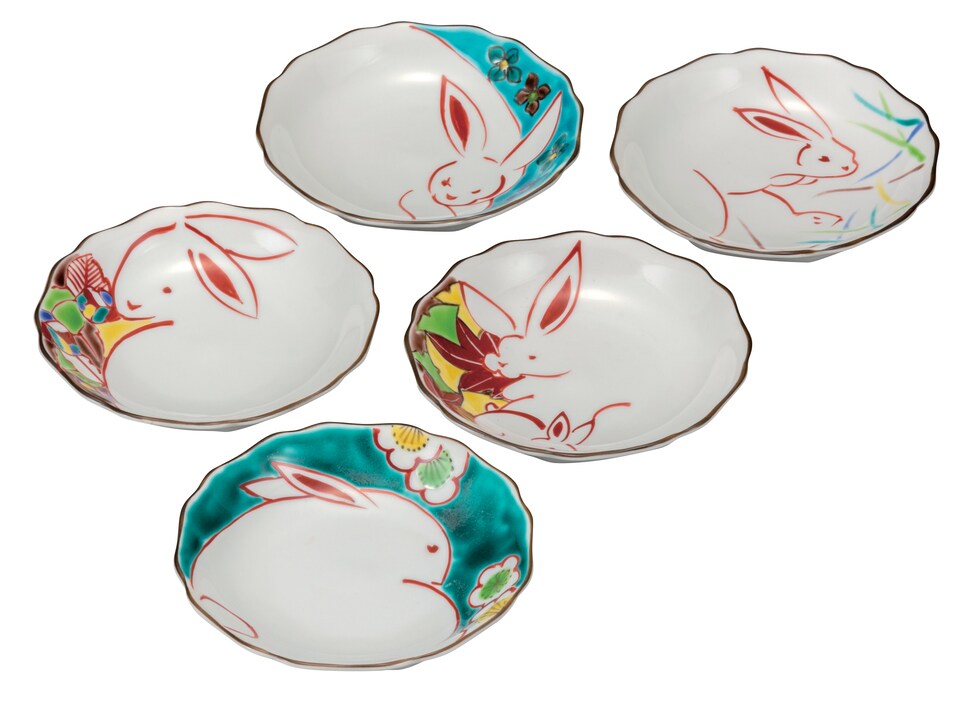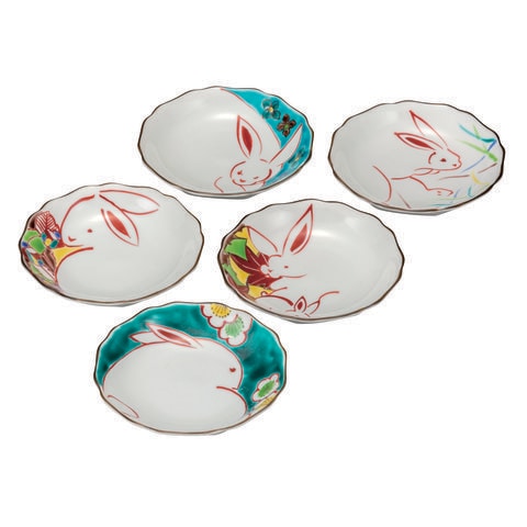 皿揃 花うさぎ 4.2号 ( 和食器セット お皿 揃える 食器 和食 九谷焼 結婚 出産 内祝い 引き出物 金婚式 誕生日プレゼント 還暦祝い 古希 喜寿 米寿 退職 )