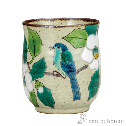 【九谷焼】 湯呑 白椿に鳥