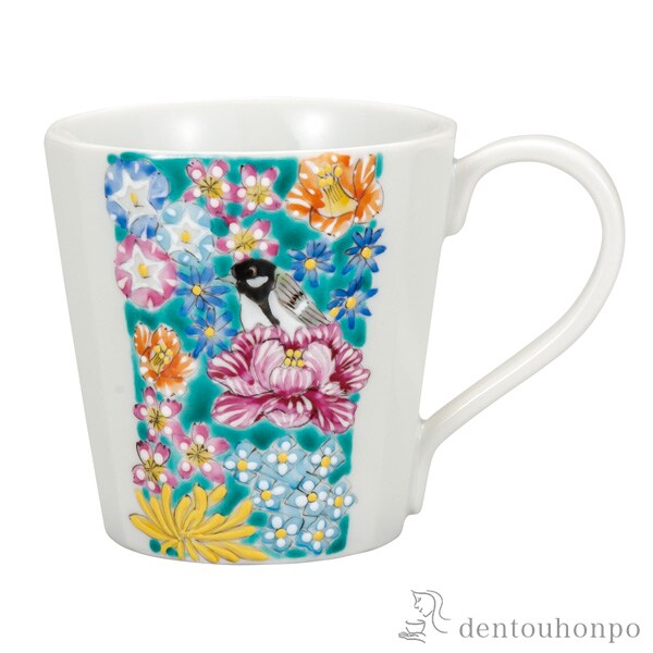 マグカップ 小鳥花詰 ( 退職祝い 定年 プレゼント デザイン マグ オリジナル タンブラー 九谷焼 結婚 出産 内祝い 引き出物 金婚式 )