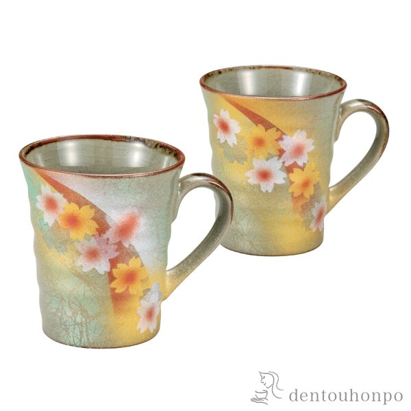 ペアマグカップ 陽光花文 ( プレゼント デザイン マグ オリジナル タンブラー 九谷焼 結婚 出産 内祝い 引き出物 金婚式 誕生日プレゼント 還暦祝い )
