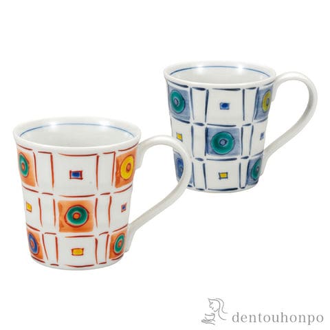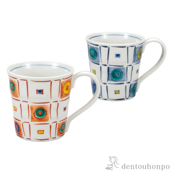 ペアマグカップ 二色石畳 ( プレゼント デザイン マグ オリジナル タンブラー 九谷焼 結婚 出産 内祝い 引き出物 金婚式 誕生日プレゼント 還暦祝い )