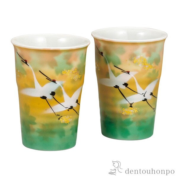 【九谷焼】 ペアフリーカップ 金箔花群鶴