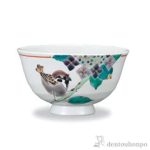 飯碗 額紫陽花に雀 ( ごはん 白ご飯 お茶碗 飯碗 おすすめ 九谷焼 結婚 出産 内祝い 引き出物 金婚式 誕生日プレゼント 還暦祝い 古希 喜寿 米寿 退職 )