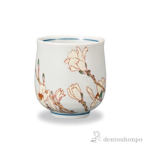 湯呑 12か月の花 辛夷(3月) ( 湯のみ ゆのみ 湯飲み カップ プレゼント 九谷焼 結婚 出産 内祝い 引き出物 金婚式 誕生日プレゼント 還暦祝い 古希 喜寿 )