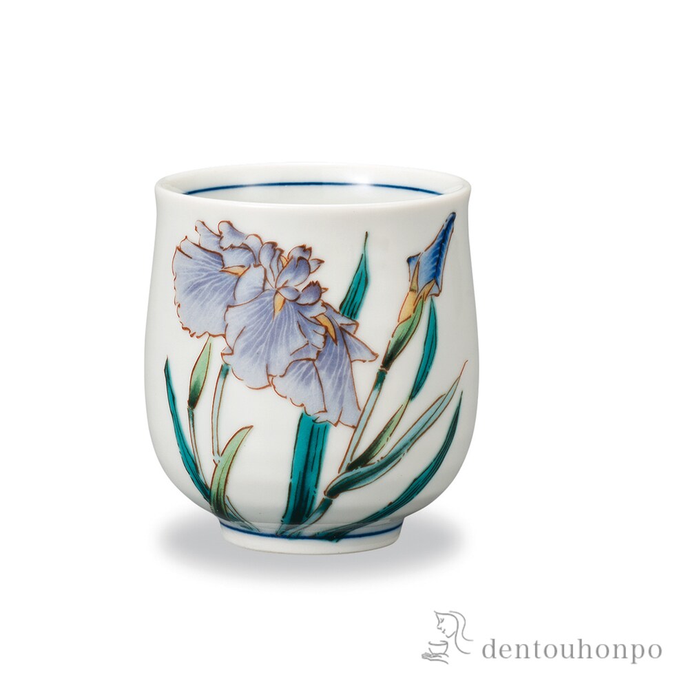 湯呑 12か月の花 花菖蒲(5月) ( 湯のみ ゆのみ 湯飲み カップ プレゼント 九谷焼 結婚 出産 内祝い 引き出物 金婚式 誕生日プレゼント 還暦祝い 古希 喜寿 )