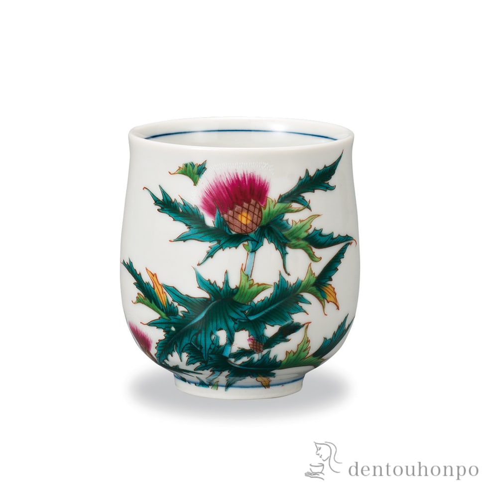 湯呑 12か月の花 薊(9月) ( 湯のみ ゆのみ 湯飲み カップ プレゼント 九谷焼 結婚 出産 内祝い 引き出物 金婚式 誕生日プレゼント 還暦祝い 古希 喜寿 )