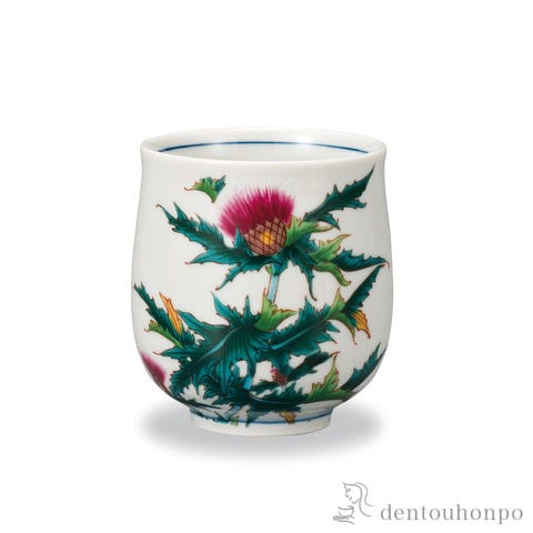 【九谷焼】 湯呑 12か月の花 薊(9月)