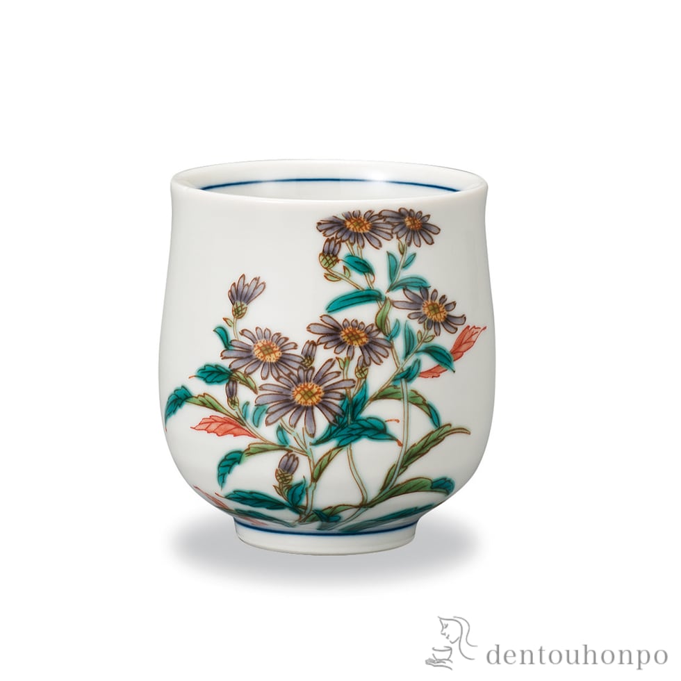 湯呑 12か月の花 紫苑(11月) ( 湯のみ ゆのみ 湯飲み カップ プレゼント 九谷焼 結婚 出産 内祝い 引き出物 金婚式 誕生日プレゼント 還暦祝い 古希 )