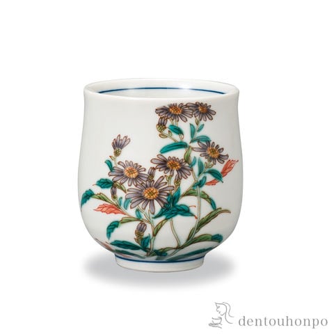 【九谷焼】 湯呑 12か月の花 紫苑(11月)