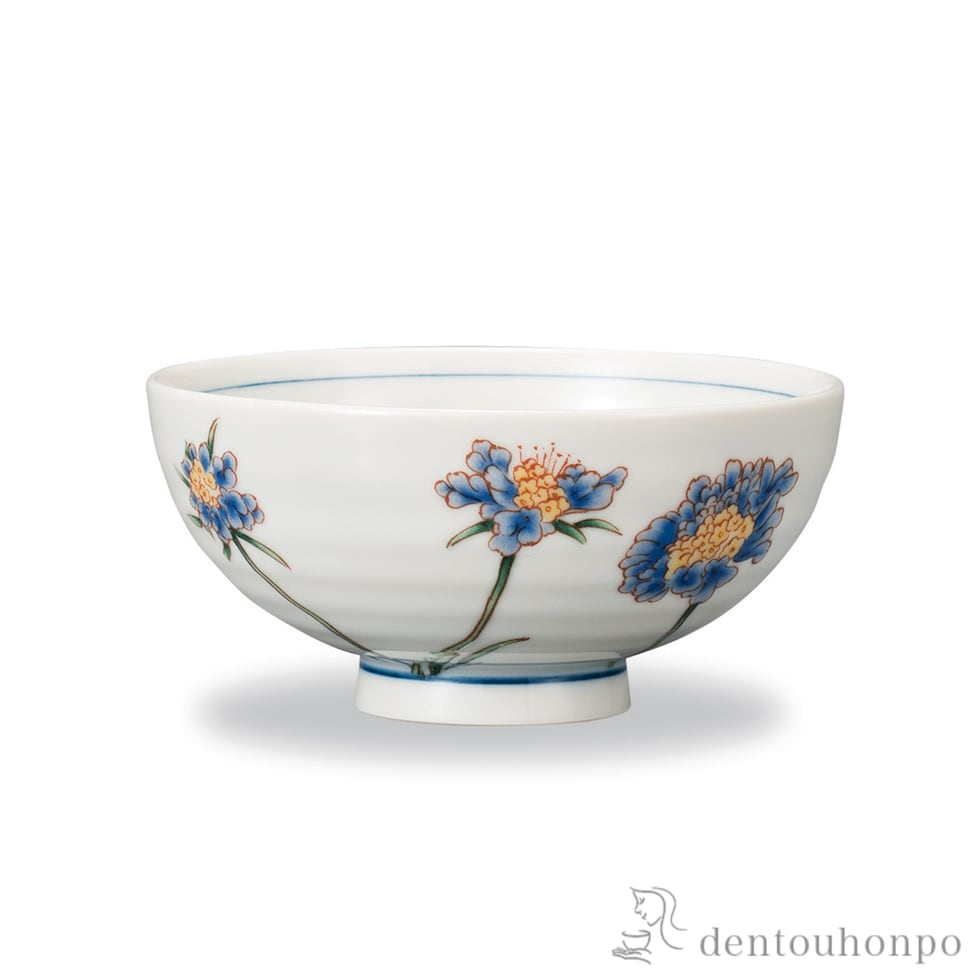 飯碗 12か月の花 松虫草(10月) ( ごはん 白ご飯 お茶碗 飯碗 おすすめ 九谷焼 結婚 出産 内祝い 引き出物 金婚式 誕生日プレゼント 還暦祝い 古希 喜寿 米寿 )
