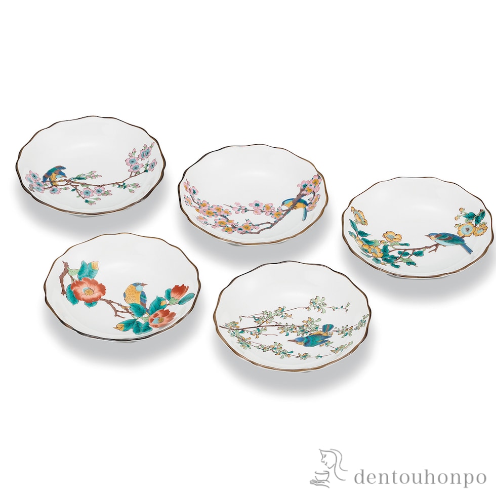 皿揃 花鳥絵変わり 4号 ( 和食器セット お皿 揃える 食器 和食 九谷焼 結婚 出産 内祝い 引き出物 金婚式 誕生日プレゼント 還暦祝い 古希 喜寿 米寿 退職 )