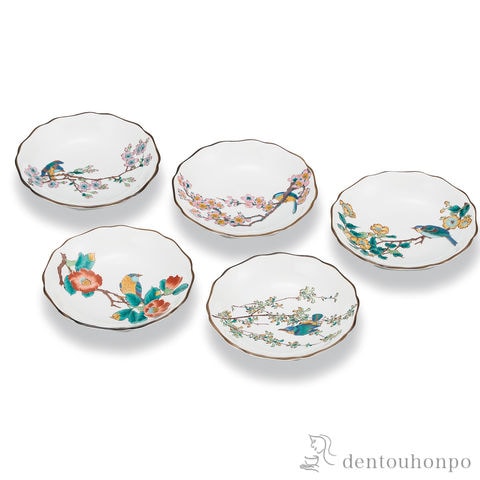 【九谷焼】 皿揃 花鳥絵変わり 4号