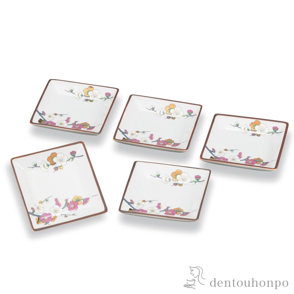 皿揃 紅梅 3号 ( 和食器セット お皿 揃える 食器 和食 九谷焼 結婚 出産 内祝い 引き出物 金婚式 誕生日プレゼント 還暦祝い 古希 喜寿 米寿 退職 )