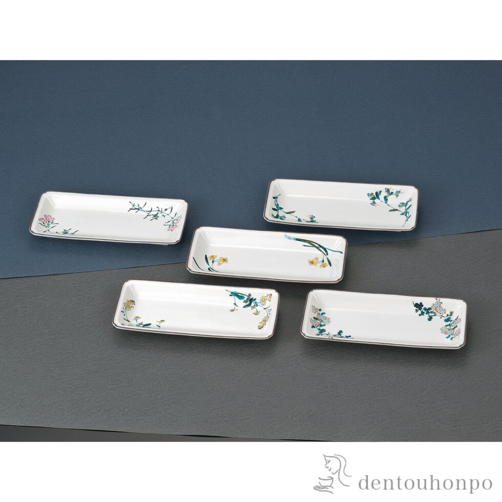 皿揃 五草花絵変わり 8号 ( 和食器セット お皿 揃える 食器 和食 九谷焼 結婚 出産 内祝い 引き出物 金婚式 誕生日プレゼント 還暦祝い 古希 喜寿 米寿 退職 )