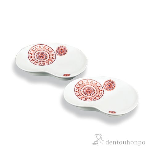 【九谷焼】 ペア皿 赤絵小紋 5.5号