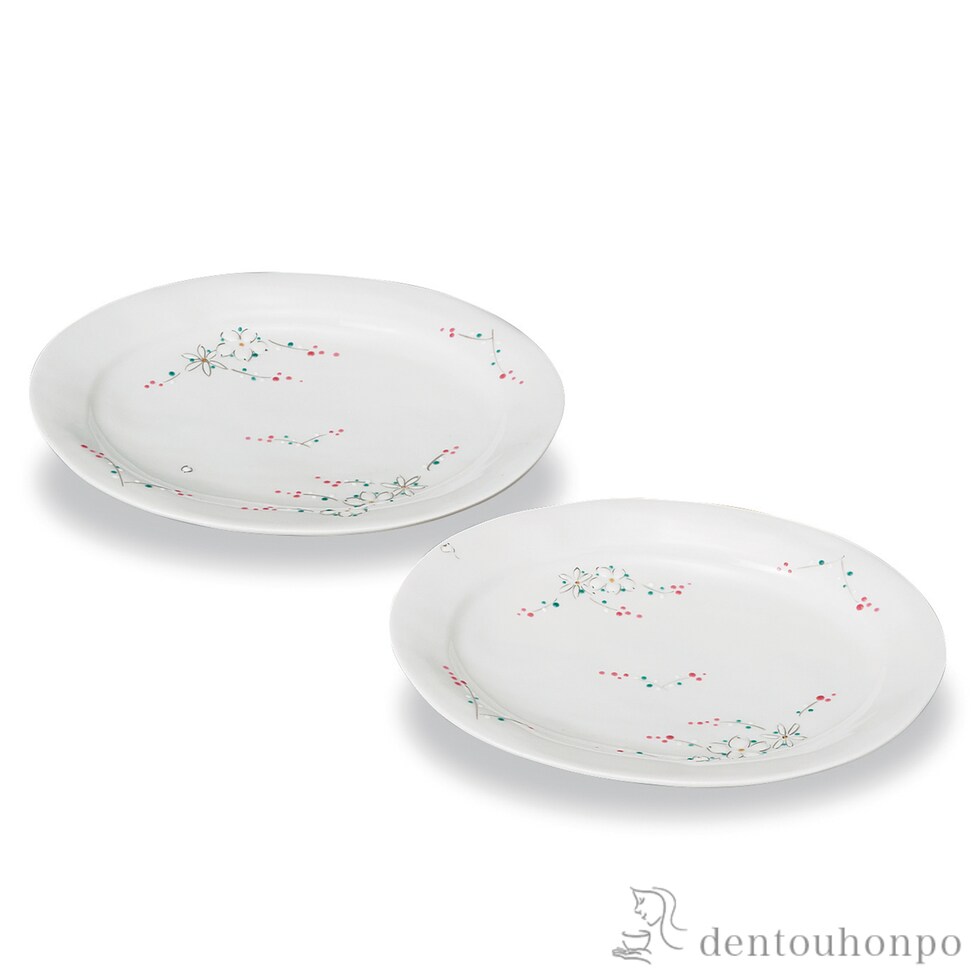 ペア皿 花文 7号 ( 和食器セット お皿 揃える 食器 和食 九谷焼 結婚 出産 内祝い 引き出物 金婚式 誕生日プレゼント 還暦祝い 古希 喜寿 米寿 退職 )