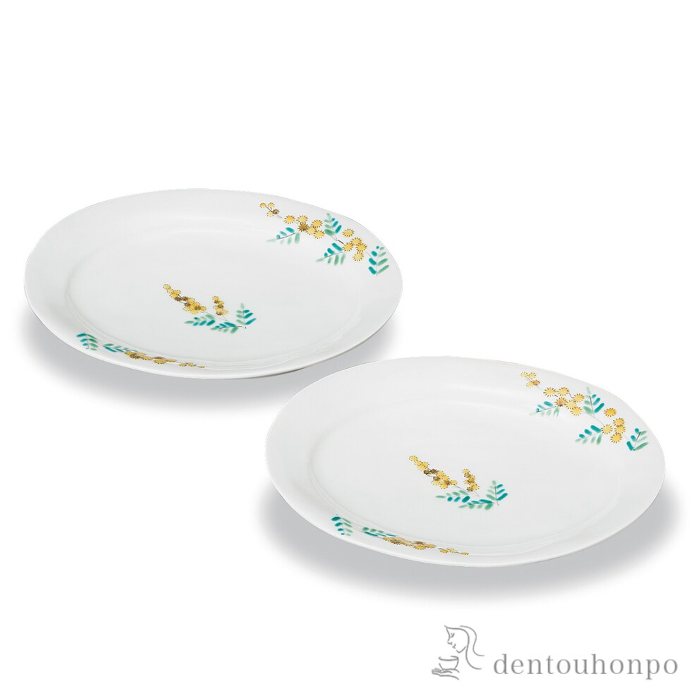 ペア皿 ミモザ 7号 ( 和食器セット お皿 揃える 食器 和食 九谷焼 結婚 出産 内祝い 引き出物 金婚式 誕生日プレゼント 還暦祝い 古希 喜寿 米寿 退職 )