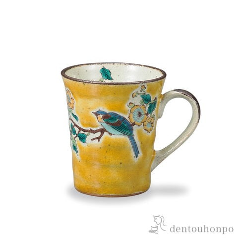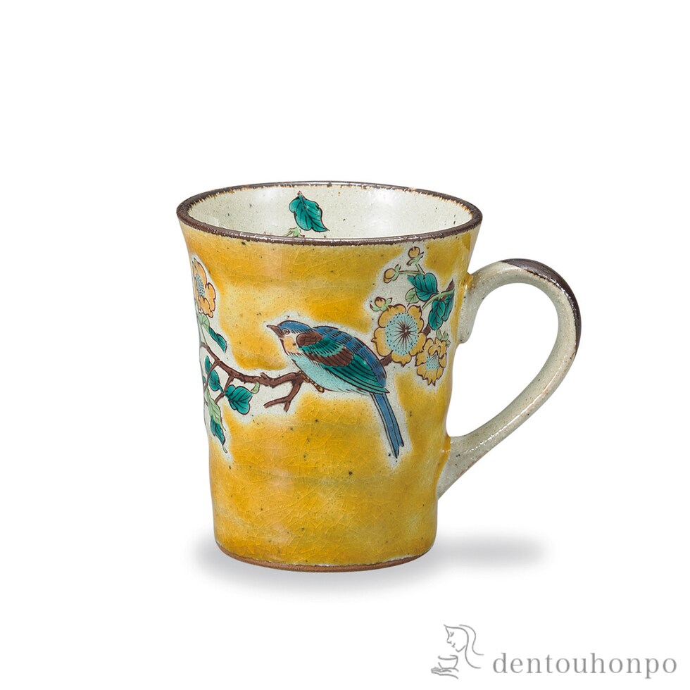マグカップ 黄地に鳥 ( プレゼント デザイン マグ オリジナル タンブラー 九谷焼 結婚 出産 内祝い 引き出物 金婚式 誕生日プレゼント 還暦祝い 古希 喜寿 )