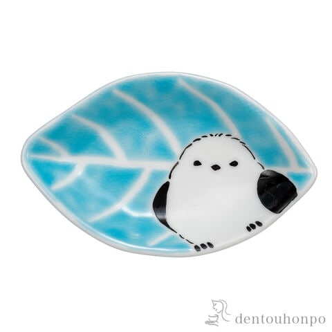 【九谷焼】 皿 シマエナガ 水色 3.8号