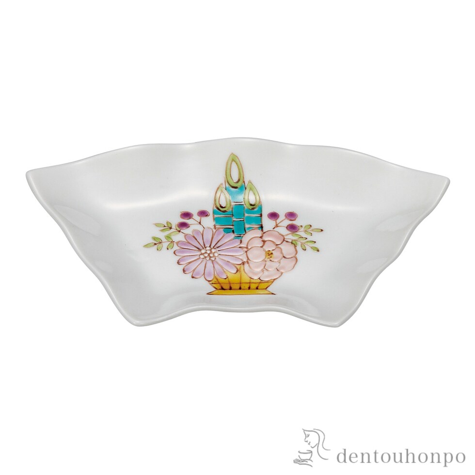 皿 門松 色絵 遊 4.5号 ( プレート 醤油皿 豆皿 和食 洋食 九谷焼 結婚 出産 内祝い 引き出物 金婚式 誕生日プレゼント 還暦祝い 古希 喜寿 米寿 退職 )