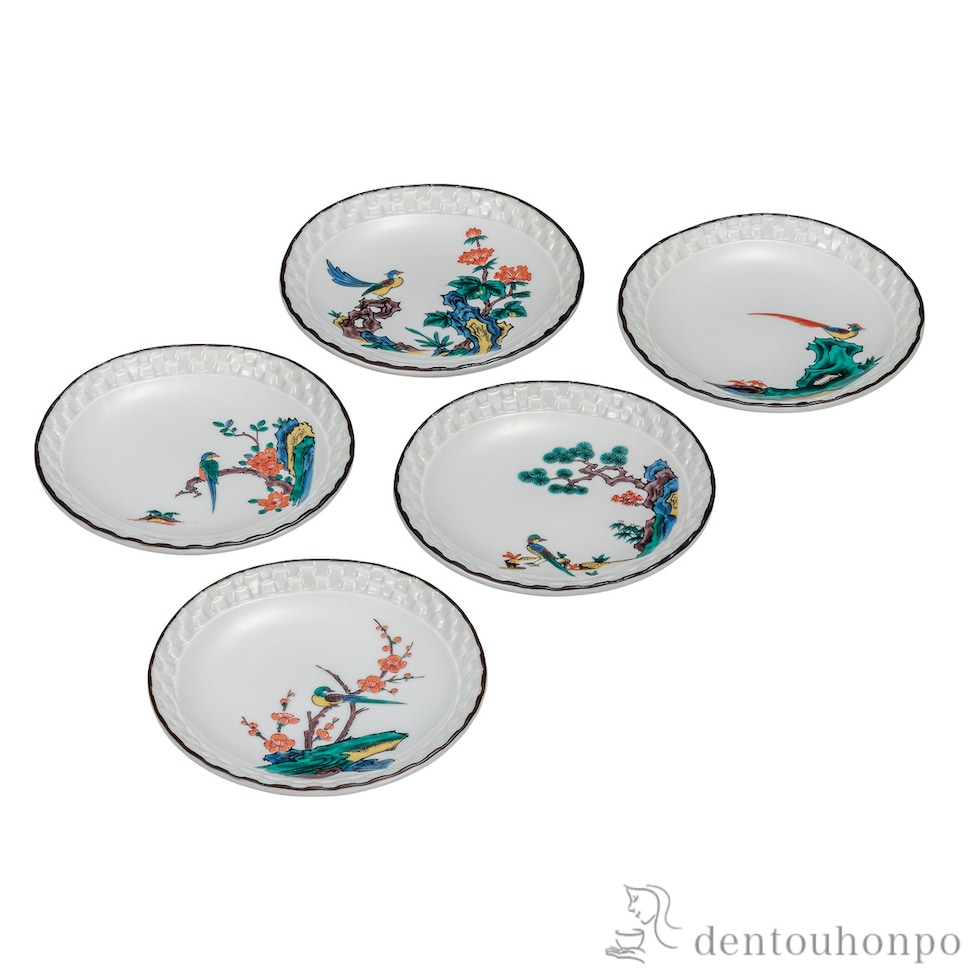 【九谷焼】 皿揃 古九谷花鳥 4.5号