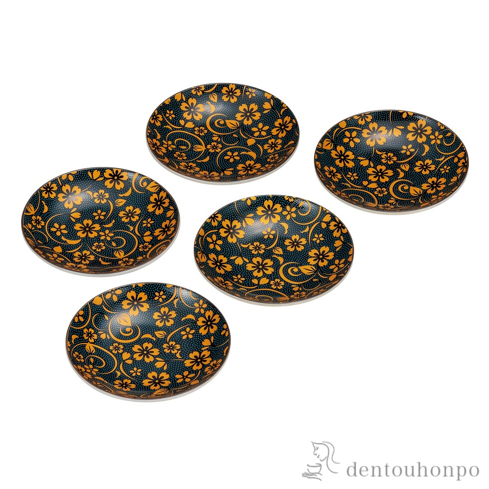 【九谷焼】 皿揃 青粒桜 3.2号