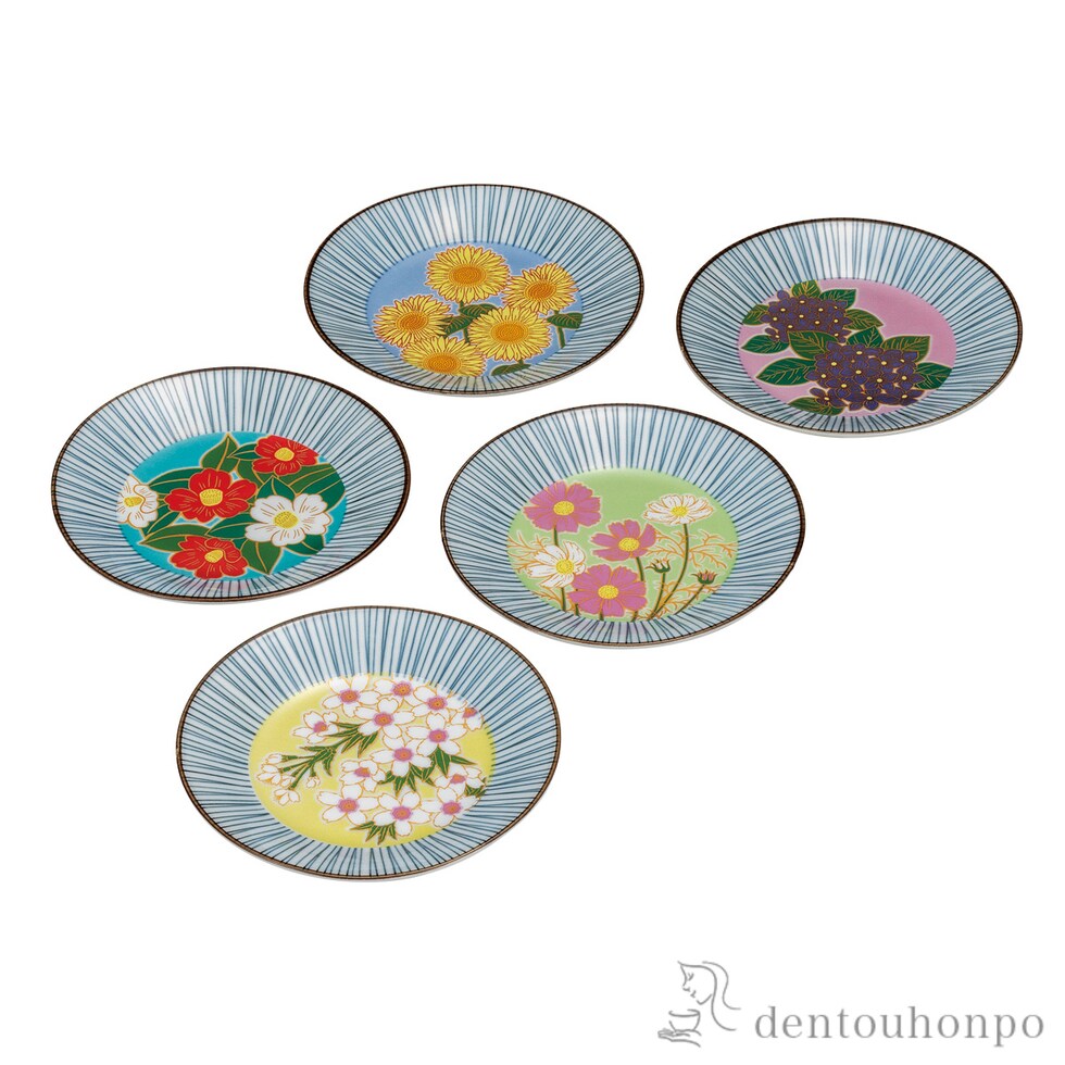 【九谷焼】 皿揃 花絵変り 5.2号