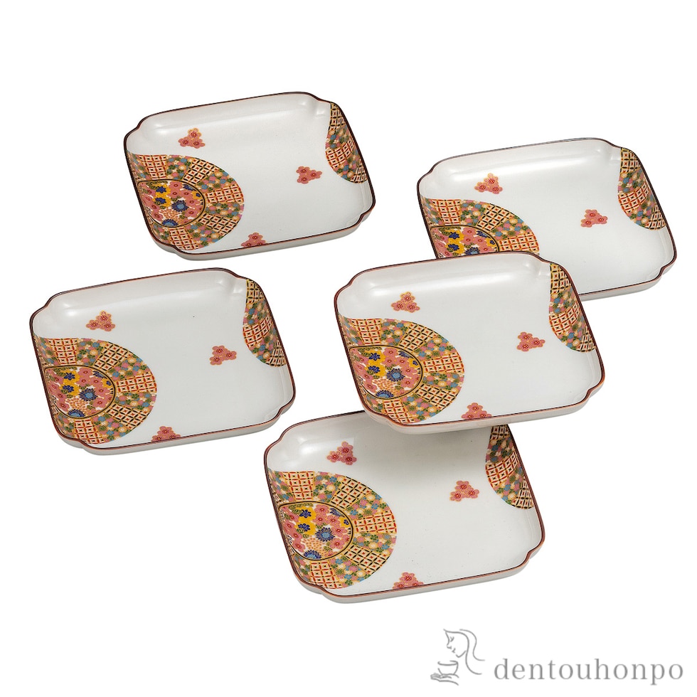 皿揃 小紋花詰 5.2号 ( プレート 醤油皿 豆皿 和食 洋食 九谷焼 結婚 出産 内祝い 引き出物 金婚式 誕生日プレゼント 還暦祝い 古希 喜寿 米寿 退職 )
