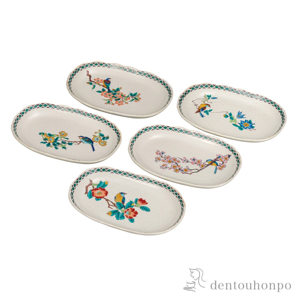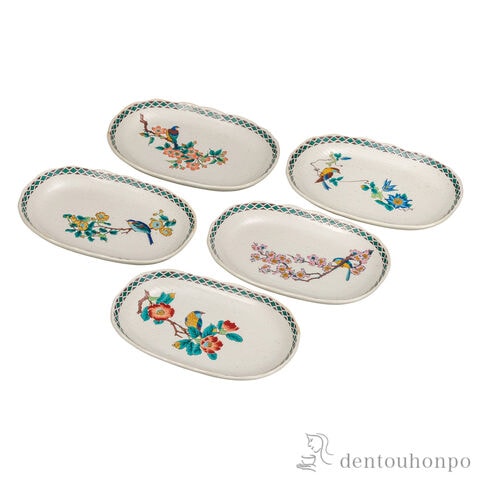 【九谷焼】 皿揃 花鳥絵変り 6.5号