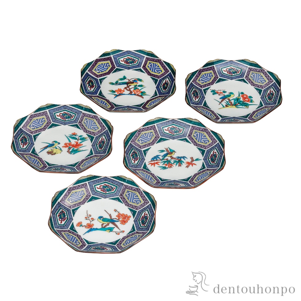 【九谷焼】 皿揃 古九谷絵変り花鳥 6号