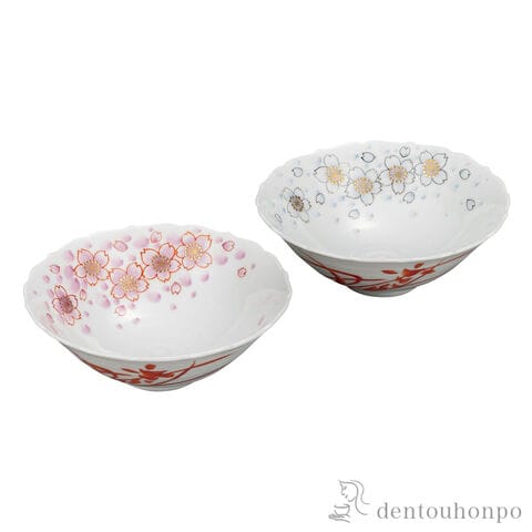 【九谷焼】 ペア鉢 金彩桜 5.5号