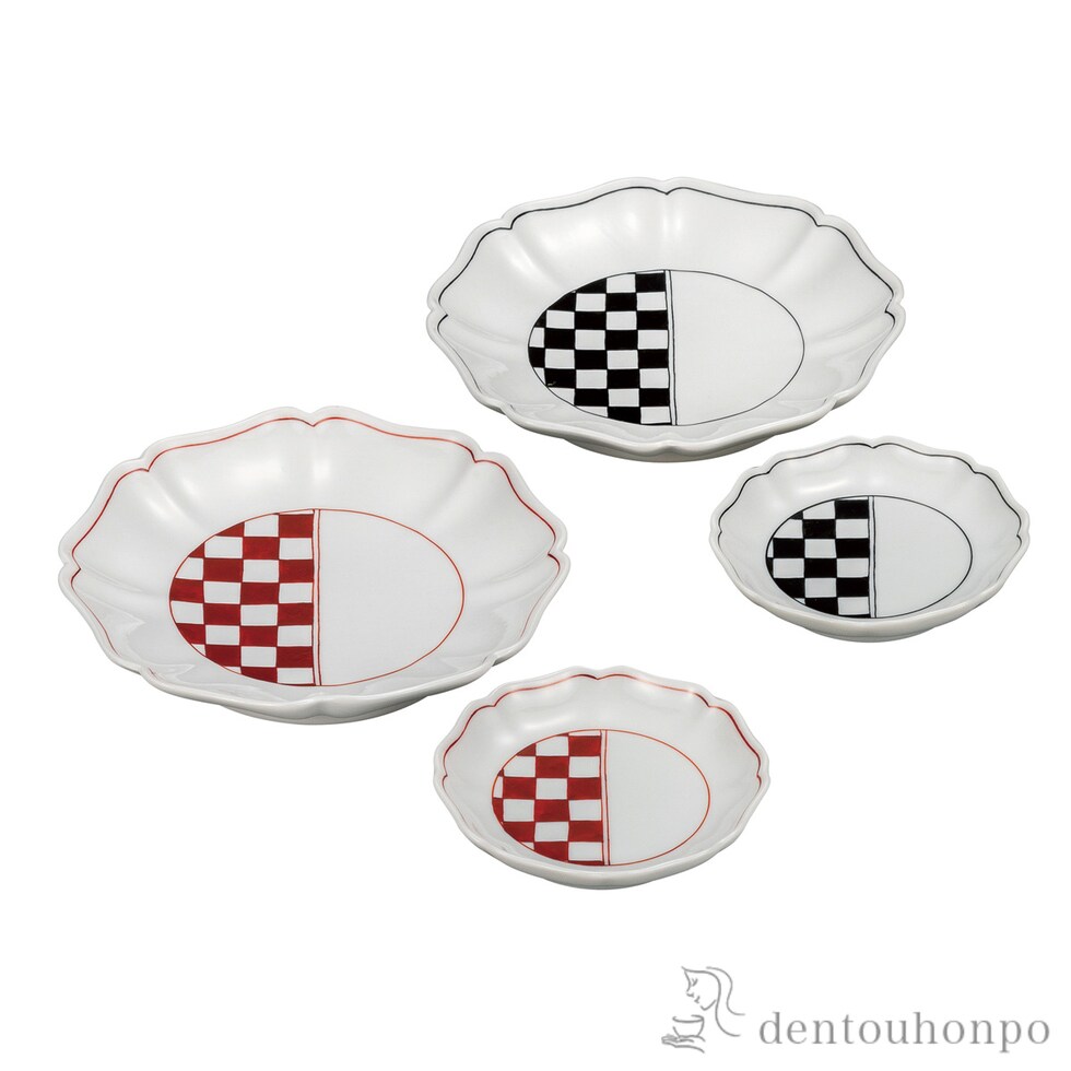 ペア皿 市松文様 5.5号 ( プレート 醤油皿 豆皿 和食 洋食 九谷焼 結婚 出産 内祝い 引き出物 金婚式 誕生日プレゼント 還暦祝い 古希 喜寿 米寿 退職 )
