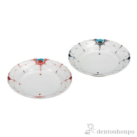 【九谷焼】 ペア皿 瓔珞文 5.5号