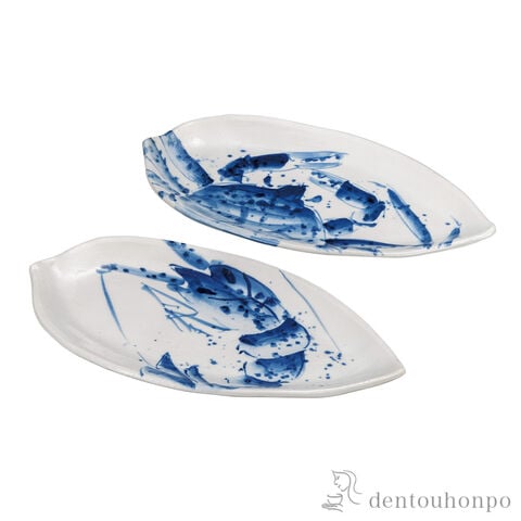 【九谷焼】 ペア皿 海の幸 蟹・海老 8.5号