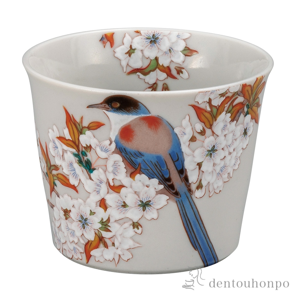 そば猪口 山桜に鳥 ( そばちょこ コップ 蕎麦猪口 冷酒カップ 来客用 九谷焼 結婚 出産 内祝い 引き出物 金婚式 誕生日プレゼント 還暦祝い 古希 喜寿 )