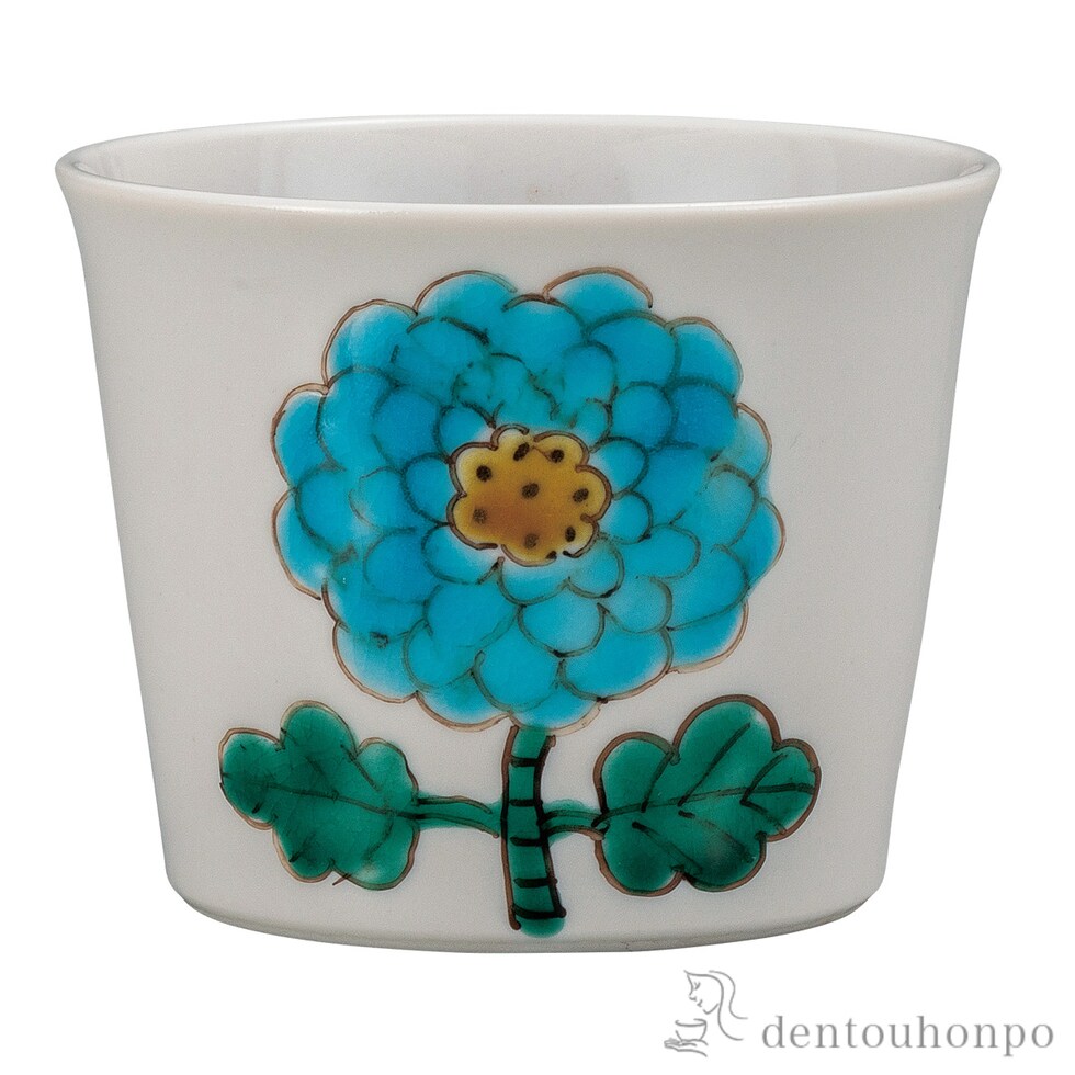 そば猪口 花紋水色 ( そばちょこ コップ 蕎麦猪口 冷酒カップ 来客用 九谷焼 結婚 出産 内祝い 引き出物 金婚式 誕生日プレゼント 還暦祝い 古希 喜寿 )