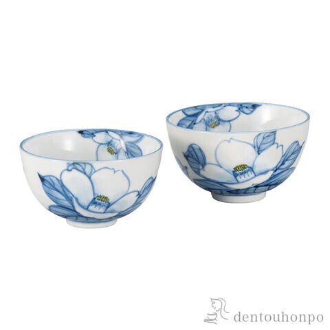 組飯碗 染付花椿 ( ギフト プレゼント ご飯茶碗 結婚祝い おすすめ 九谷焼 結婚 出産 内祝い 引き出物 金婚式 誕生日プレゼント 還暦祝い 古希 喜寿 )